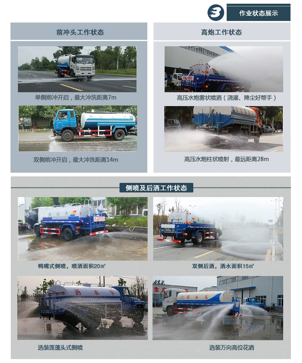 標(biāo)準(zhǔn): 泵性能符合機(jī)械部標(biāo)準(zhǔn)《灑水車(chē)技術(shù)條件》Q(chēng)C/T29114-93中對(duì)泵規(guī)定的要求。沖水距離在20米以上,楊程30米以上,每分鐘1000轉(zhuǎn),自吸高度6米。