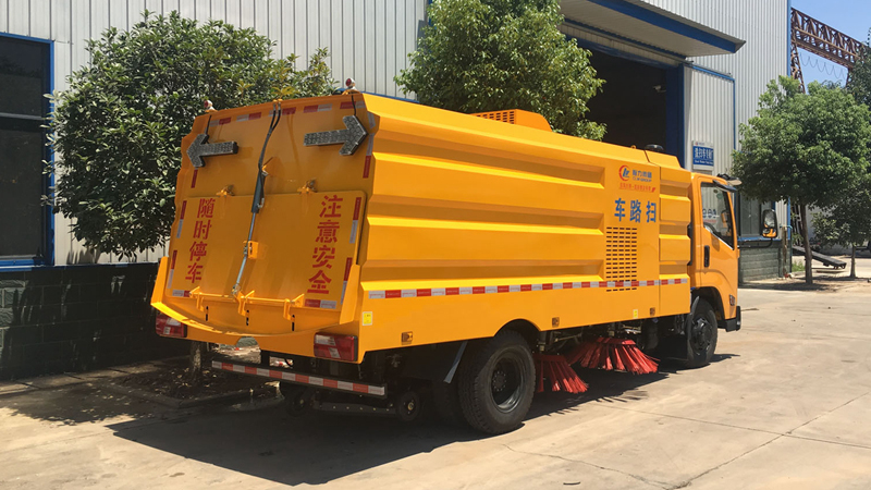 1、采用吸掃結(jié)合的方式收集垃圾,濕式除塵、電液控制,液壓傾翻卸料的作業(yè)方式對(duì)路面進(jìn)行清掃作業(yè)。