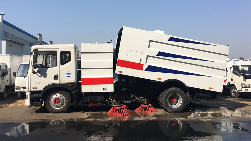 1、采用吸掃結合的方式收集垃圾,濕式除塵、電液控制,液壓傾翻卸料的作業(yè)方式對路面進行清掃作業(yè)。
