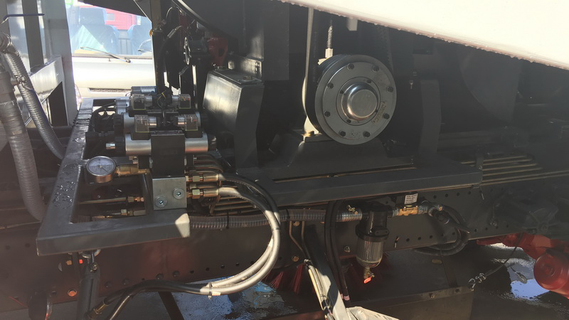 3、采用"中置四盤刷+后置吸嘴"的結構布置,便于清掃裝置與吸嘴的調(diào)整和維護,轉(zhuǎn)場時整車通過性好。