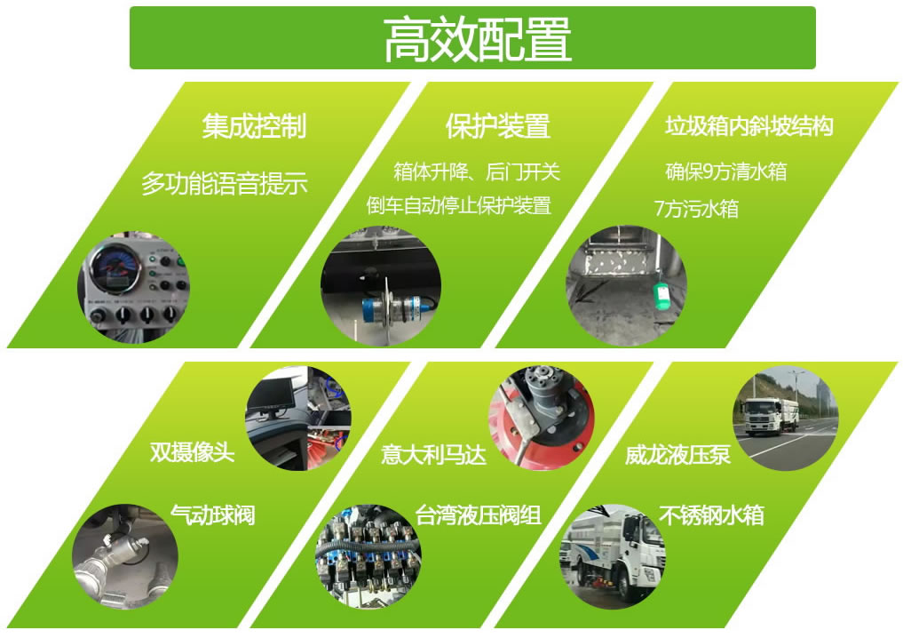 1、采用吸掃結(jié)合的方式收集垃圾,濕式除塵、電液控制,液壓傾翻卸料的作業(yè)方式對(duì)路面進(jìn)行清掃作業(yè)。